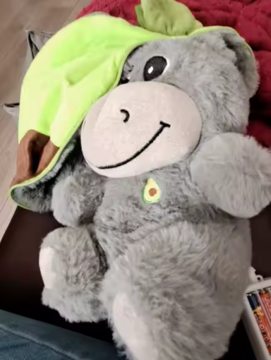 La transformación a aguacate es muy ingeniosa. Se siente como tener dos peluches en uno.